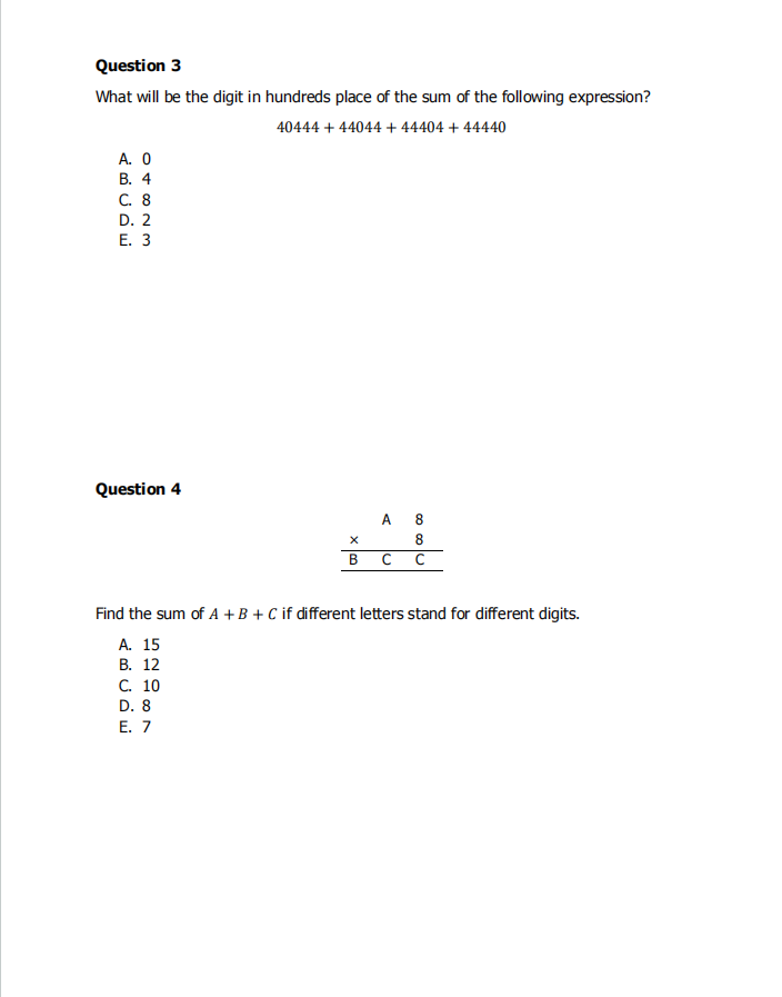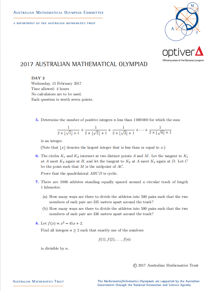 AMO的考察内容覆盖算术、代数、几何、统计概率、数论等多个数学领域,不同年级的考点和难度有所不同: