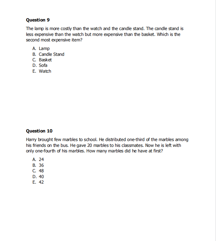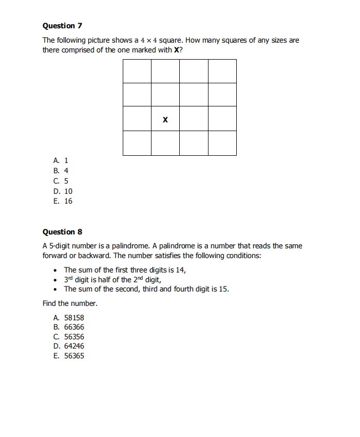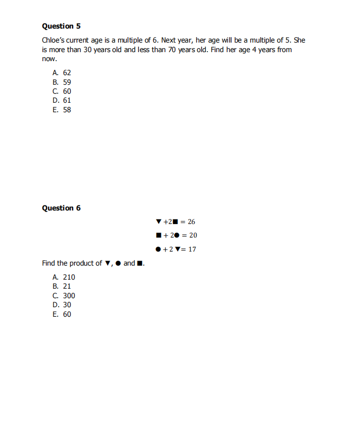 算术和代数、几何图形和统计量、非常规问题解决(数字模式、可分性测试、空间可视化、逻辑问题)